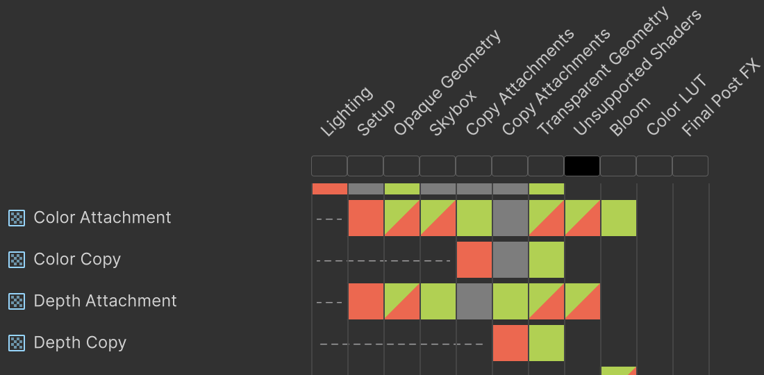 If both color and depth need to be copied we'll now see two instances of the copy attachments pass appear in the render graph viewer.